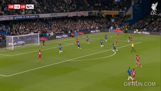 切尔西第一球,就是格拉文贝赫防恩佐,照顾切尔西左路,利物浦中路索博一对二,凯塞多前插进球。
